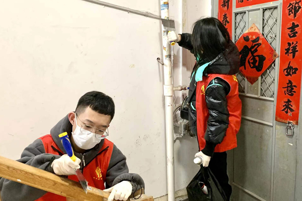 40余名研究生志愿者前往桂林街道西康路西社区开展学雷锋志愿服务活动,对居民楼内的小广告进行集中清理。