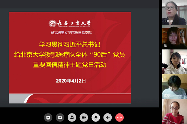 研究生党支部组织开展了学习总书记回信精神线上分享活动,研究生党员结合全国抗疫形势,深入分享心得,并表示要牢记习近平总书记嘱托,以这次抗疫中“90后”的优秀代表为榜样,志存高远、忠于祖国,敢于担当、勇于奋斗,勤奋学习、锤炼身心,努力成为在新时代改革开放事业中可堪大用、能担重任的栋梁之才,让青春在党和人民最需要的地方绽放绚丽之花。