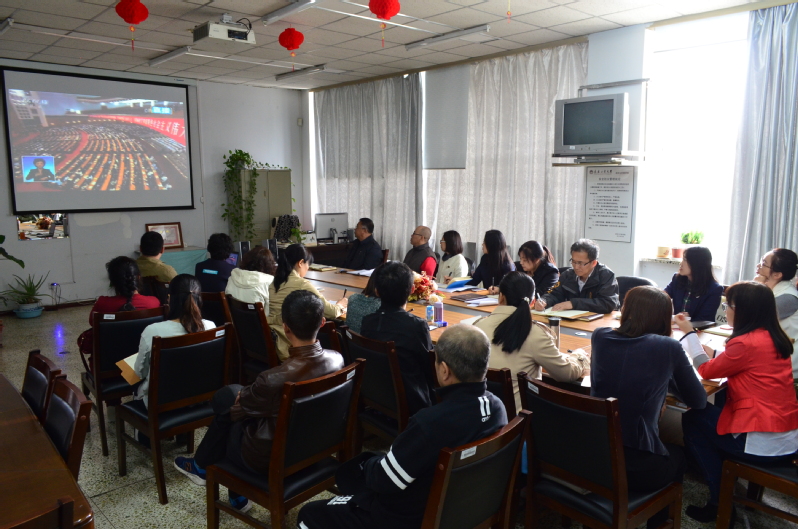 党总支组织全院师生集中收听收看了大会的现场直播。