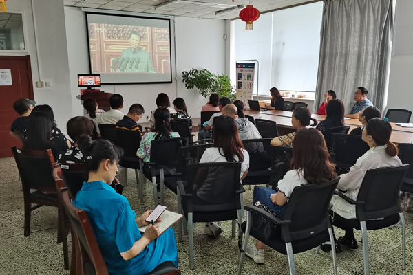 师生集体收看大会直播实况,共同见证这一伟大历史时刻。