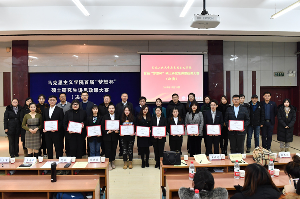评委们针对选手的教学内容、教学方法、教学效果、教学特色和知识掌握等进行综合评分。经过角逐,2019级马克思主义中国化研究专业明彦林同学荣获大赛一等奖。与会领导为获奖学生颁发了荣誉证书。