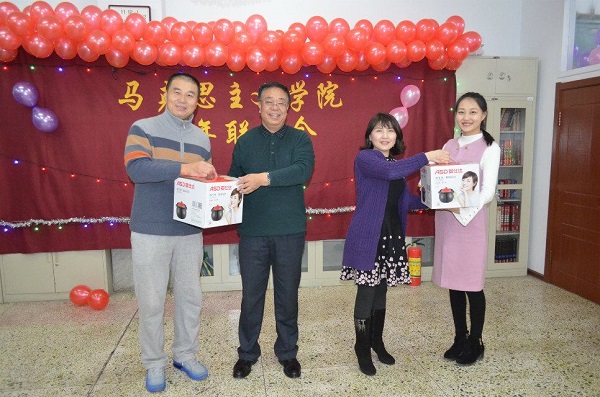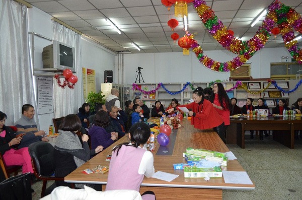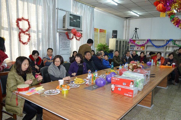 在学院资料室举办迎新年联欢会,全院职工欢聚一堂,共迎新年。