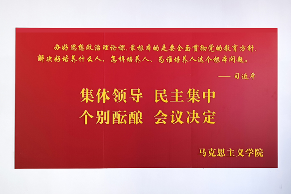文化墙以学院现有办公教学场所、党员活动室和会议室为主要区域,内容涵盖了习近平总书记对思政课教师的殷殷嘱托和谆谆教诲、学院简介、教师宣誓、风采展示等主题,形式简洁大气,布局庄重大方,充分体现了时代赋予高校成人小说
