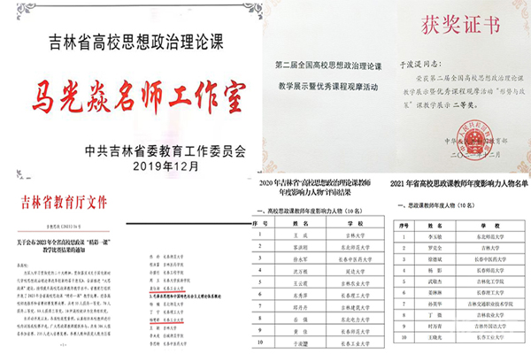 学院充分发挥思政课主渠道作用,持续深化思政课改革创新,不断提升思政课的思想性、理论性和亲和力、针对性。扎实推进教学改革,修订完善了听课评课等教学管理制度,定期开展教学观摩、集体备课、教学大讨论等活动,逐渐形成了一整套较为完整的备课、听课、评课的教学质量监控体系。创新推出“党课开讲啦”系列微视频等“互联网+思政课”教学模式改革,打造“五位一体”教育教学体系,取得思政育人新成效。学院教师获得“全国高校思想政治理论课教学能手”“全国高校思想政治理论课教学骨干”“全国高校思政课教学展示活动二等奖”等国家级荣誉,3次课入选“教育部网络备课平台”优质课资源库,获吉林省高校思政课“精彩一课”“精彩教案、精彩课件”等比赛奖项共28项。获省级教学成果奖1项;省级教育科学优秀成果奖一等奖2人、二等奖2人、三等奖2人;获优秀高教科研成果奖一等奖1人、二等奖2人。
