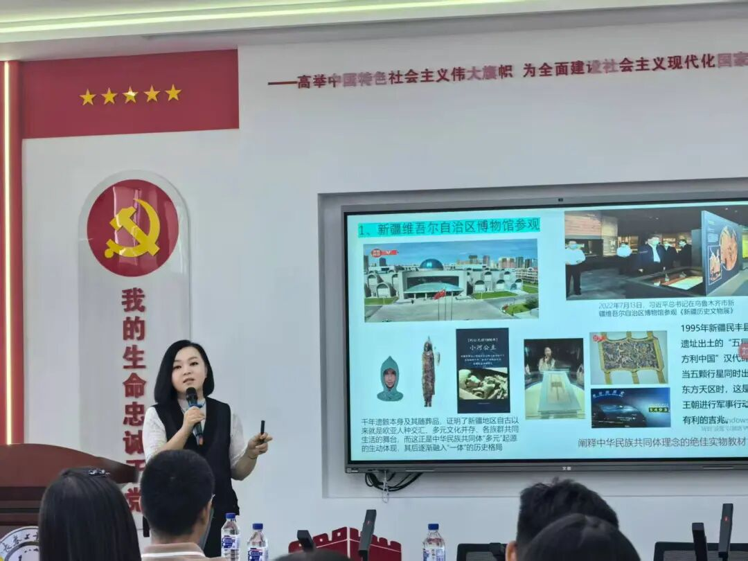 李林琳老师围绕其在新疆师范大学的培训经历,以“民族地区意识形态安全”“铸牢中华民族共同体意识”为核心议题,从“学科建设体系化”“教学实践本土化”“科研创新聚焦化”三个维度展开分享。