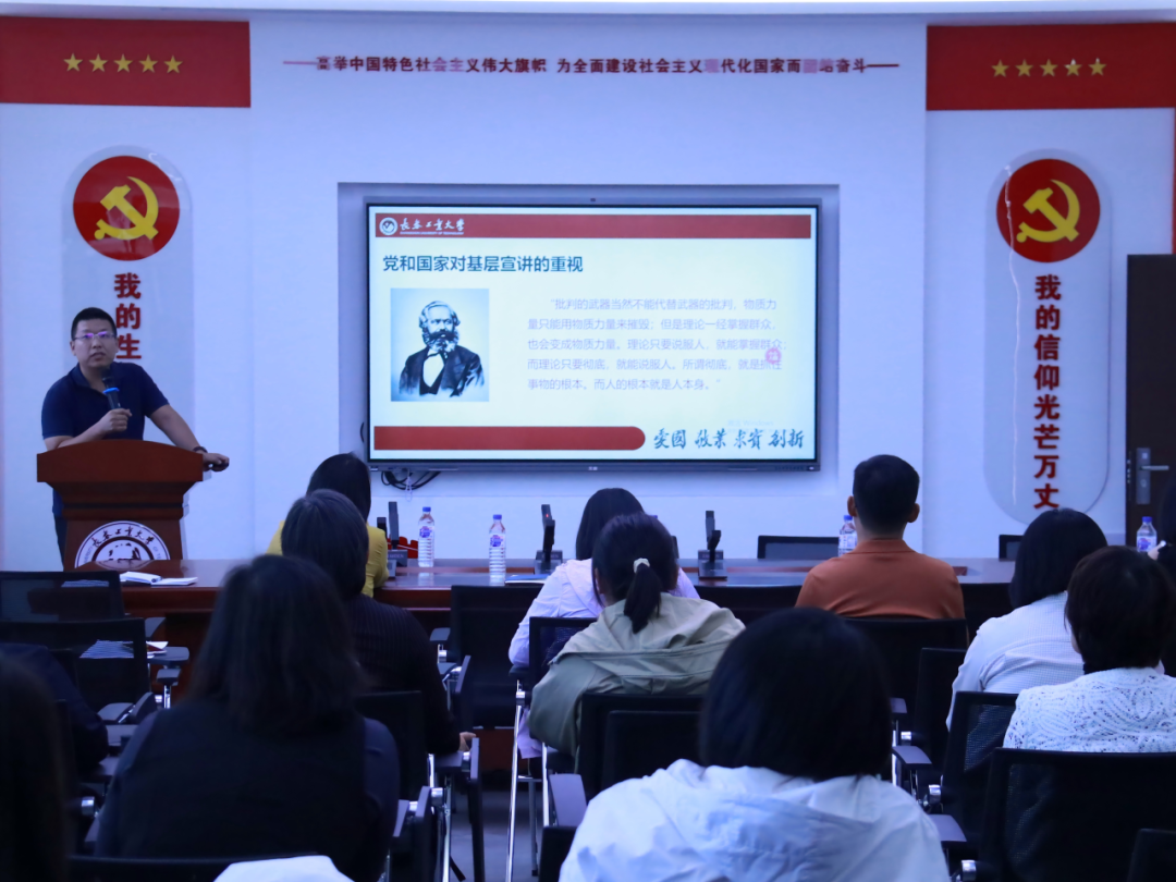 楚洪涛老师汇报了暑期参加中宣部全国基层宣讲骨干培训和复旦大学高校思政教师培训的收获。他结合培训内容与实践案例,分享了在基层宣讲内容设计、形式创新与实效提升方面的思考,并介绍了复旦大学在思政课改革创新、教师能力提升及校园文化融合上的经验做法,为学院进一步推进基层宣讲创新、教师队伍建设和思政教育发展提供了有益借鉴。